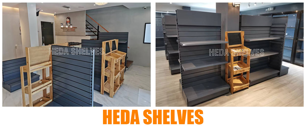After screening, we recommend this gray 4-layer double-sided slatwall supermarket shelves for our customers.