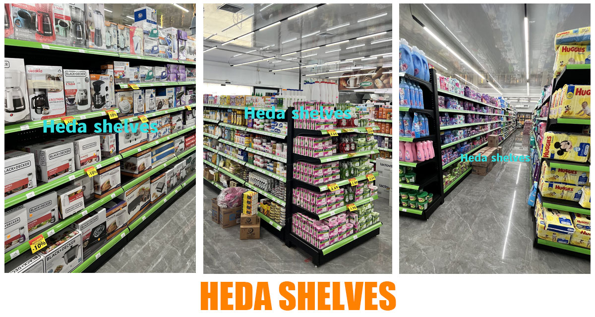 The customer is very satisfied with our heda supermarket equipments team, so he decided to purchase the shelves and equipment needed for the entire supermarket from us.