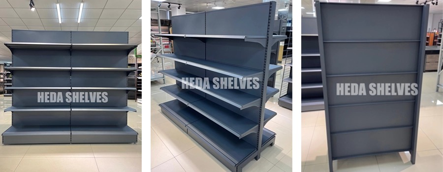 Our double sided gondola shelving is the perfect solution for displaying merchandise in high-traffic retail environments. Designed for maximum capacity and flexibility, this shelving unit provides storage on both sides—ideal for central aisles in supermarkets, grocery stores, and chain convenience stores.