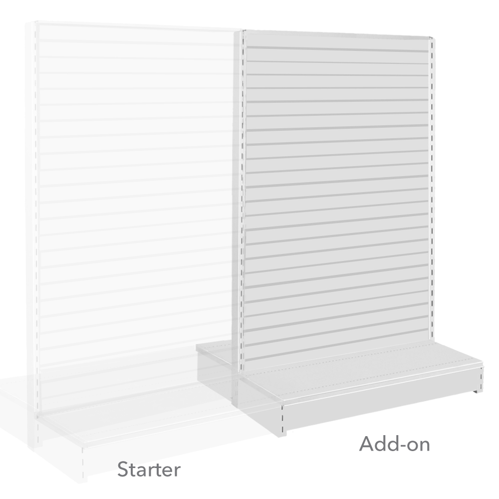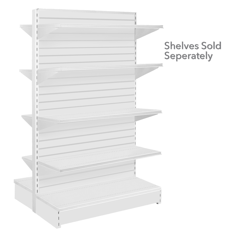 The Double Sided Slatwall Gondola Shelving is a stylish and practical freestanding shelving solution designed for high-traffic areas and center store aisles. With slatwall panels on both sides, it provides maximum flexibility for product display using hooks, brackets, shelves, and other slatwall accessories.